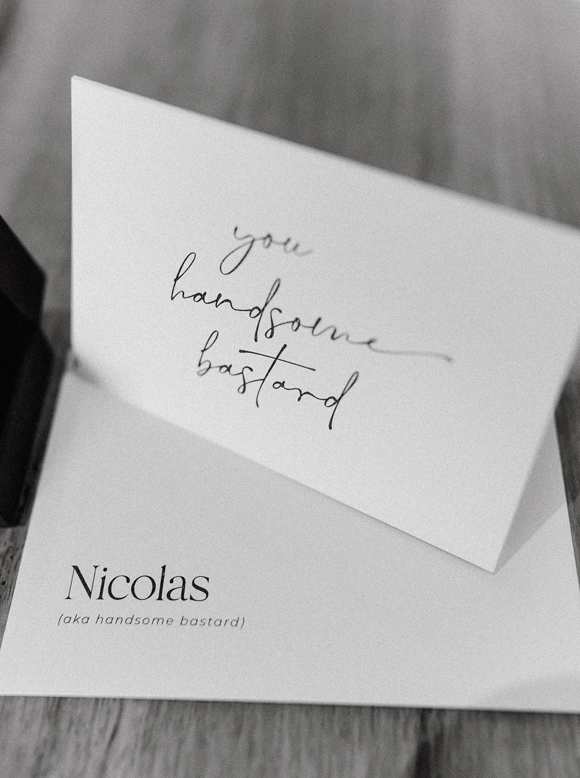 Their guests' first glimpse into the day was a refined invitation suite that spoke of understated elegance. Printed on a beautiful ivory textured card, a subtle gold monogram and clean, modern typography hinted at the sophisticated celebration to come. It was a perfect promise of a day rooted in simple, beautiful design.