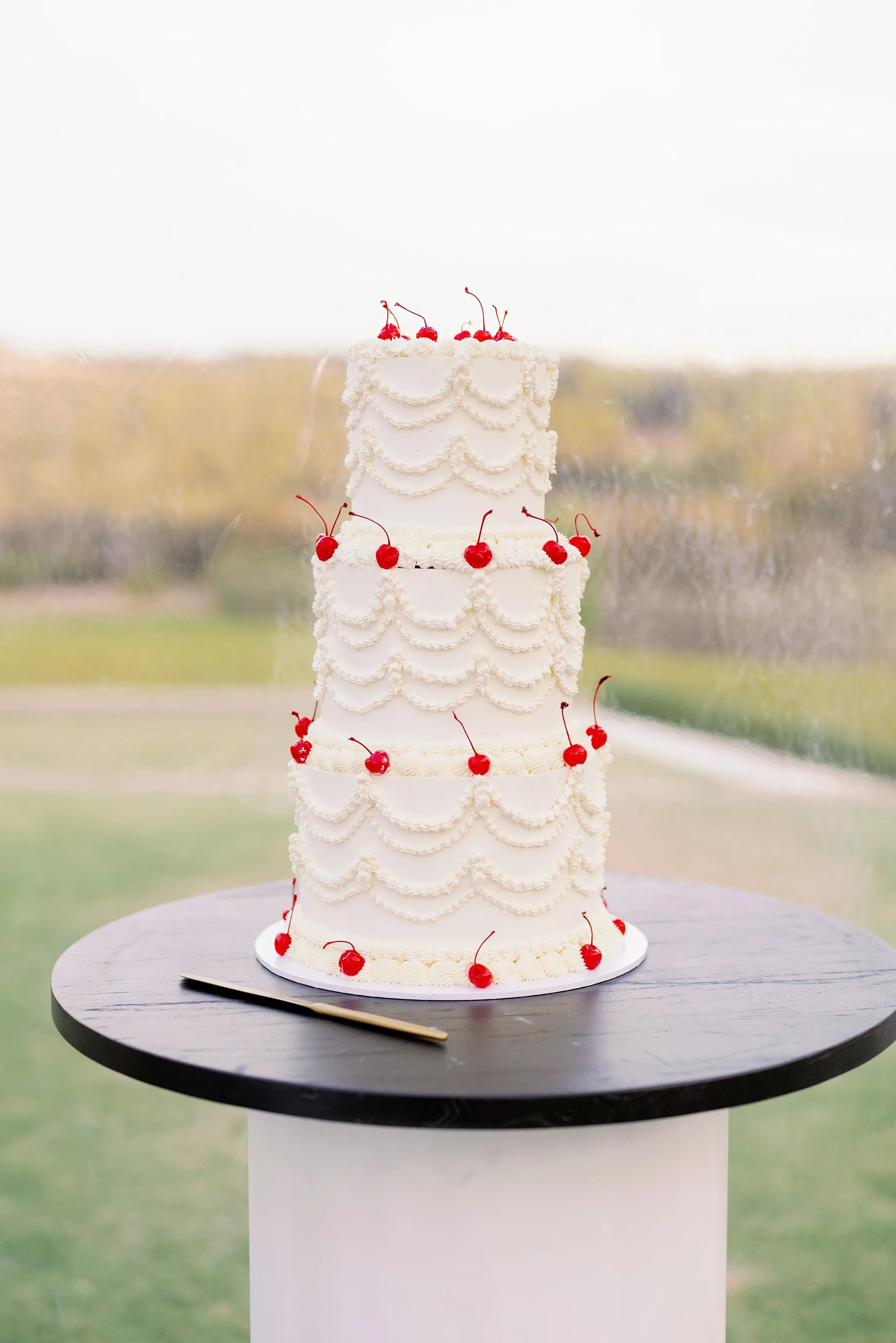 This elegant narrative continued seamlessly on the day itself. As guests arrived, they were greeted by signage that echoed the clean, classic theme. At the reception, beautifully rounded menus graced each place setting, while a custom sign at the bar detailed the couple’s signature cocktail, adding a touch of personal flair to the celebration.