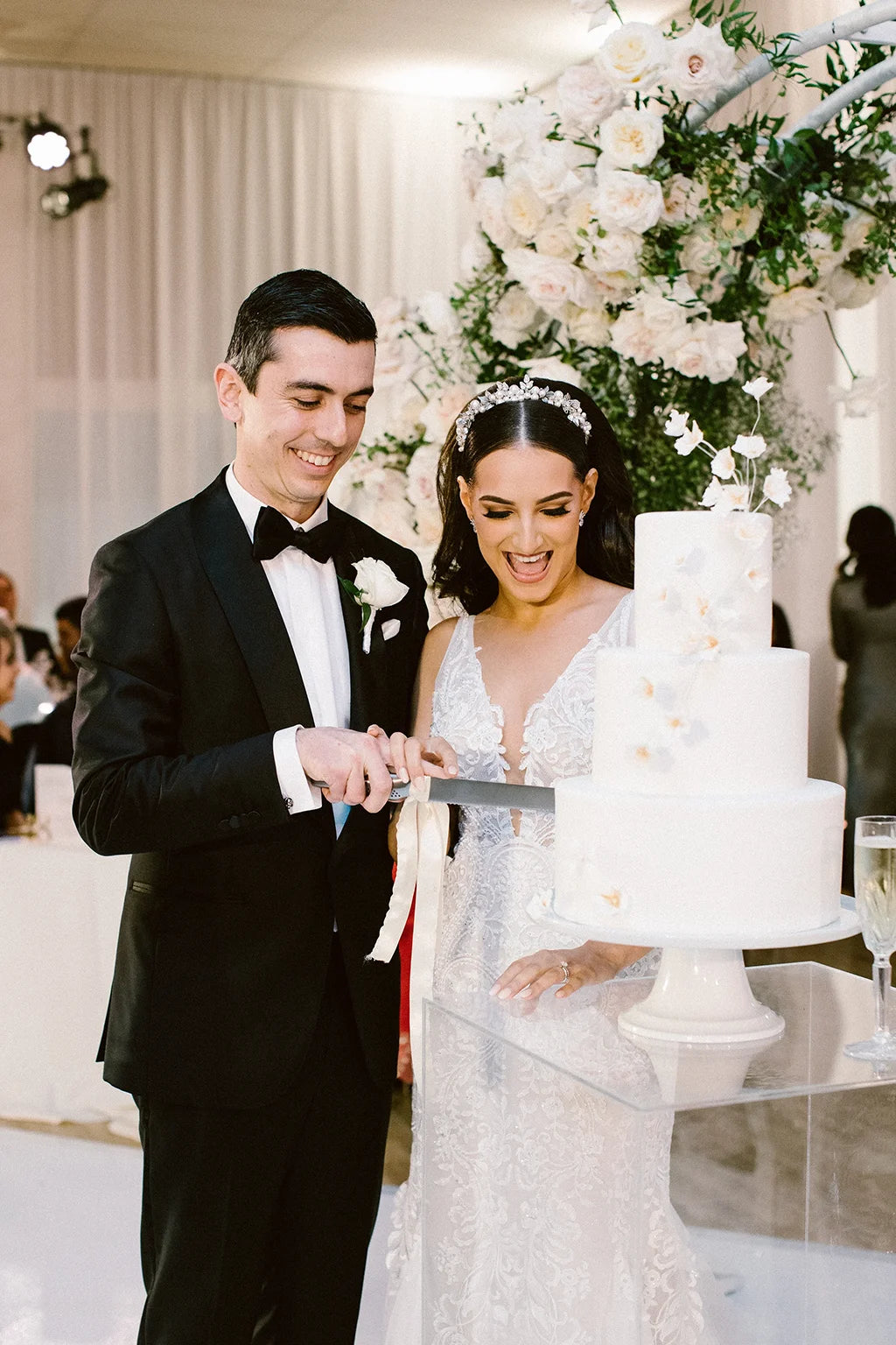 The celebration continued at The Vasto Club, where the modern aesthetic was seamlessly woven into a grand reception. The frosted acrylic theme continued, with a stunning seating chart and a chic welcome sign greeting guests. Each place setting featured coordinated menus and personalised acrylic coasters, a thoughtful and lasting favour for their loved ones.