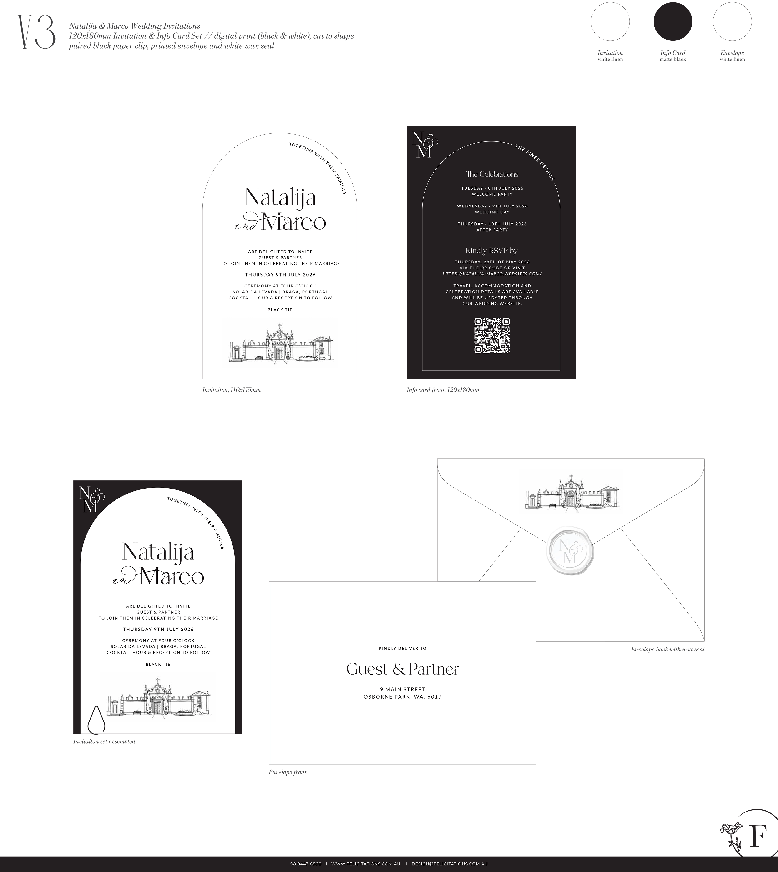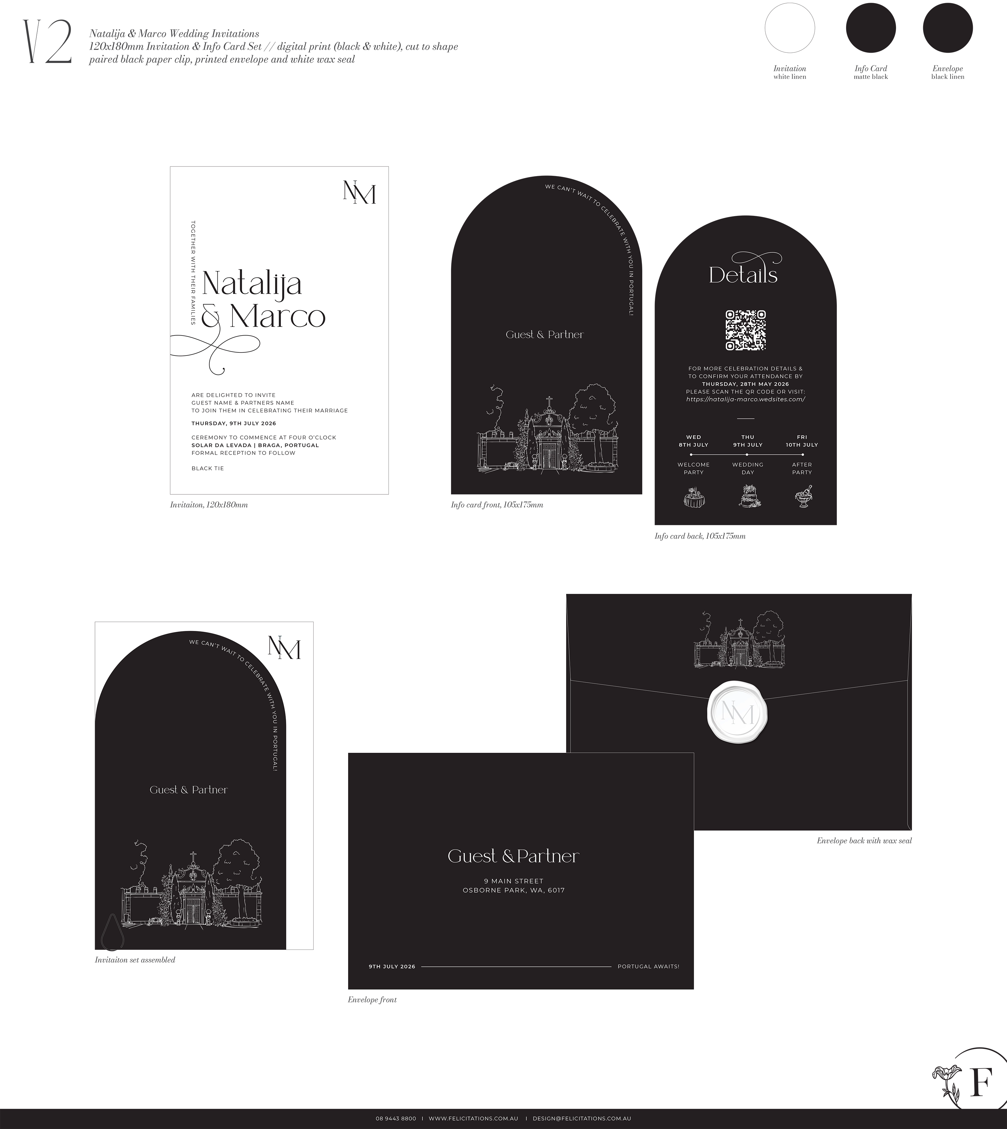 We design three personalised concept directions, you choose your favourite, and we refine it with up to four rounds of changes. Printed on beautiful stocks with optional luxury finishes.
