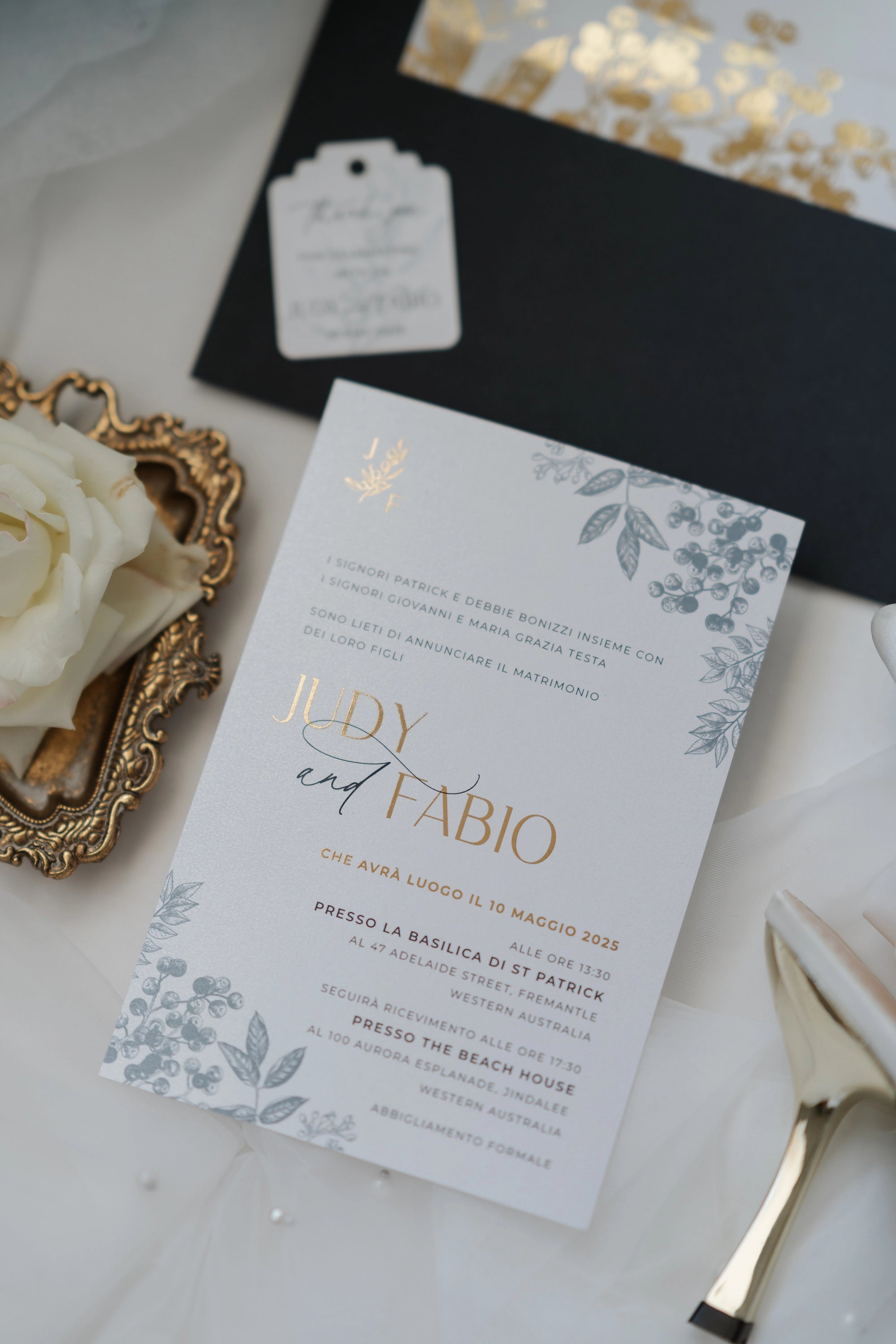 • Letterpress, Hot Foil, or Embossing: Luxurious 600GSM Cardstock.The ultimate tactile statement. Choose letterpress for deep texture, foil for high shine, or embossing for subtle dimensionality.