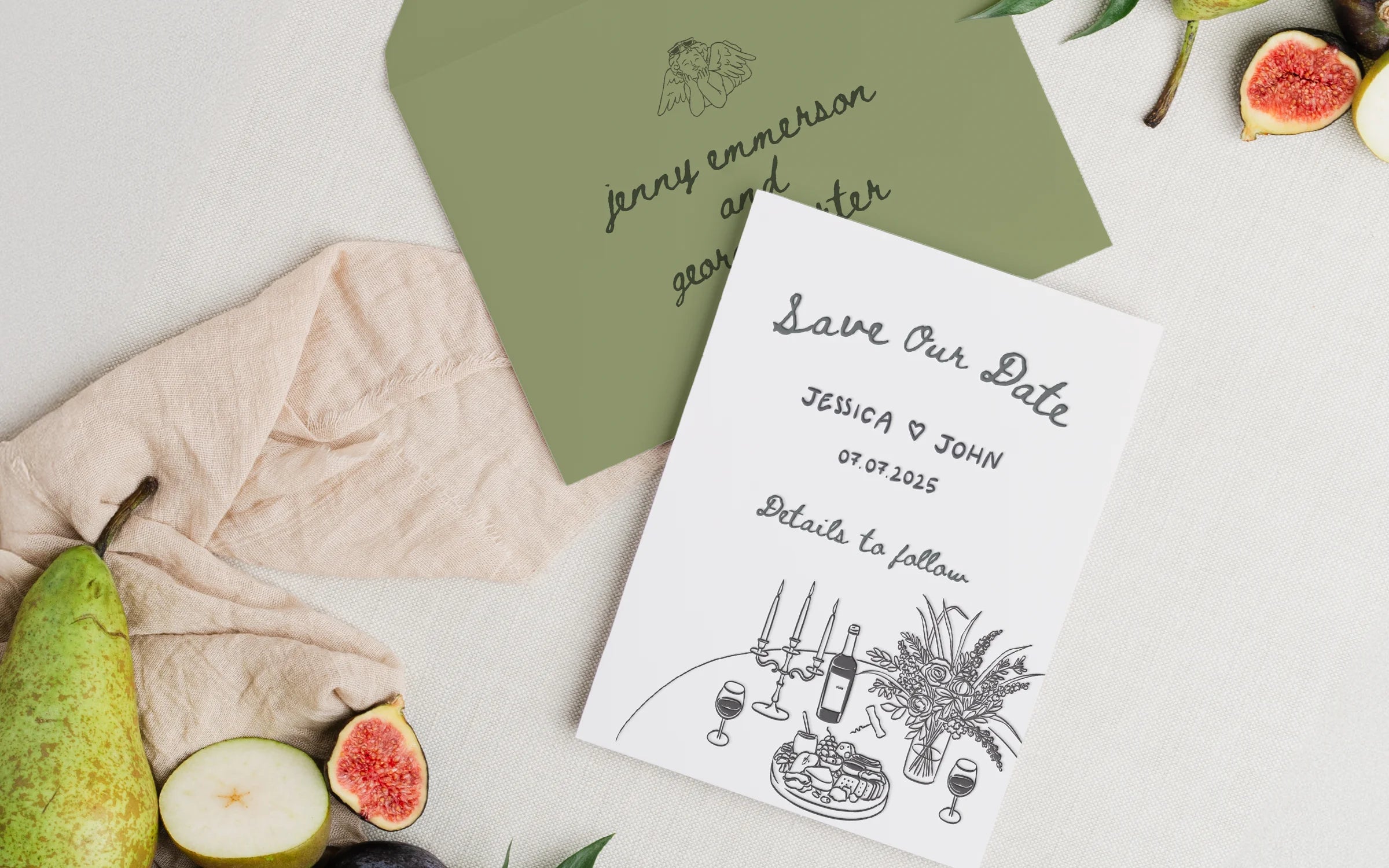 We recommend mailing your invitations 3–6 months before the wedding date. For destination weddings, 6–9 months is advised.